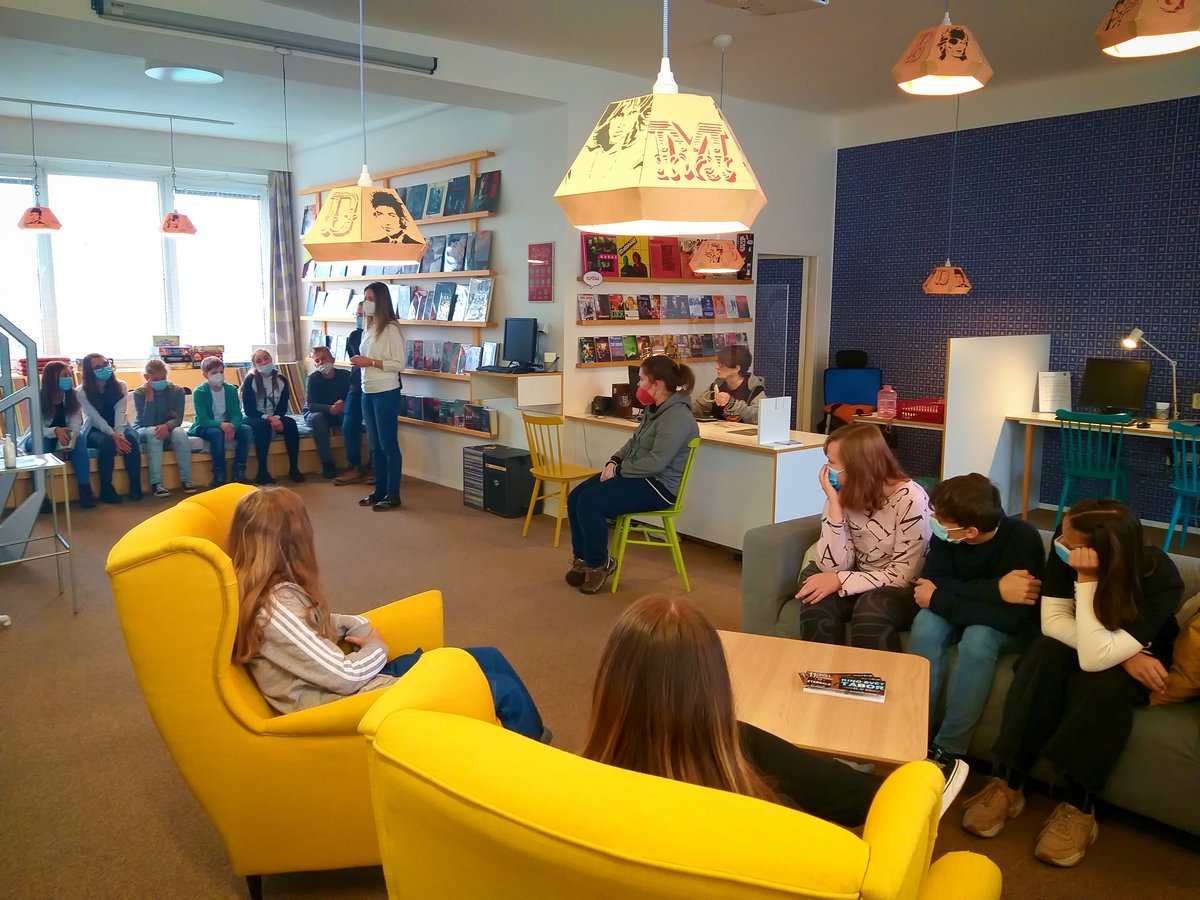 Také jsme zašli do táborské knihovny. V průběhu komentované prohlídky jsme měli možnost vidět všechny části, od dětské knihovny, přes část určenou dospělým čtenářům. Bylo to příjemné dopoledne plné krásných knih, které jsme měli možnost si v příjemném ušáku prohlédnout a na chvíli se začíst.
