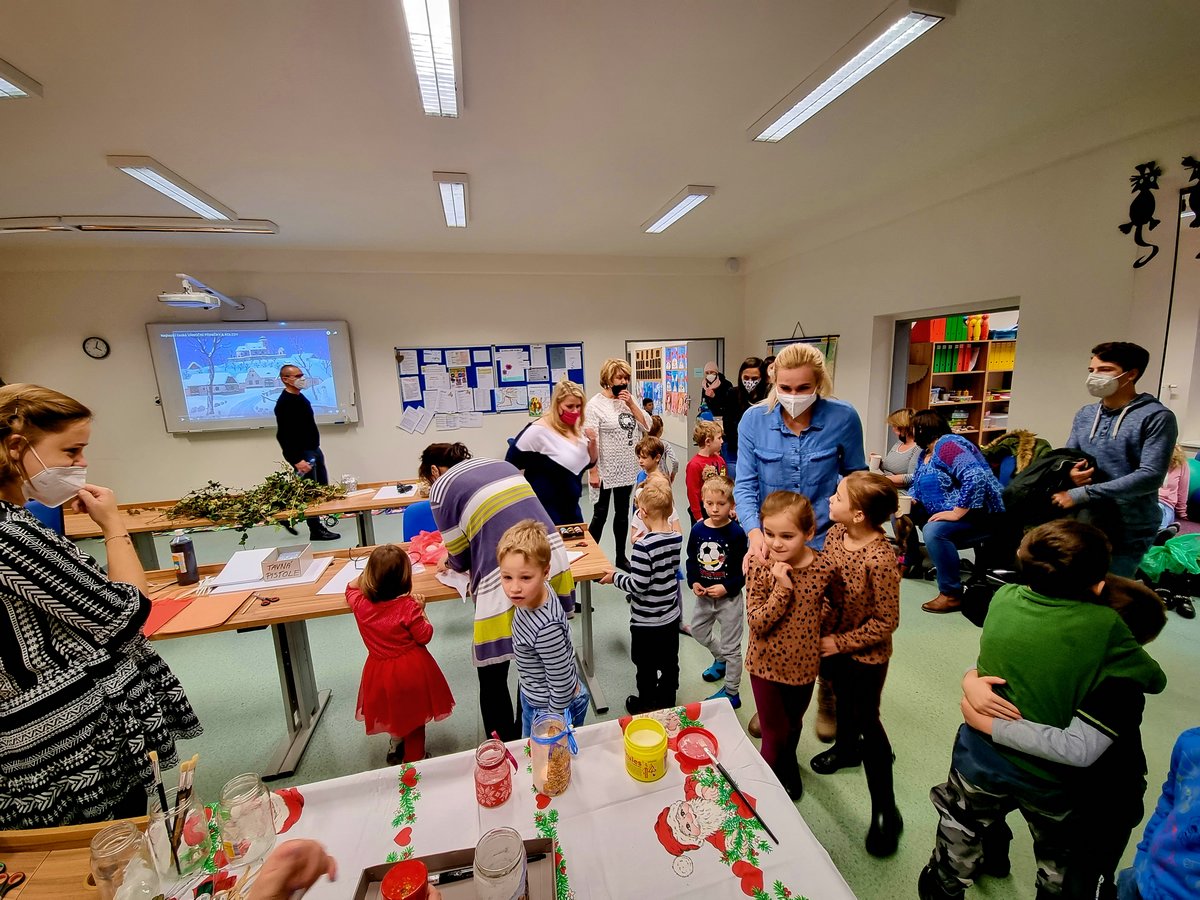 Nezapomněli jsme ani na předškolní přípravku, která si poslední kurz tohoto roku zpestřila vánočním vyráběním. Děti si mohli vlastnoručně udělat papírového anděla, adventní věnec, skleněný dekorovaný svícen či mnoho dalšího. Děkujeme i zapojeným rodičům a za měsíc na předškoláckém kurzu opět na viděnou! – anděly, adventní věnec, skleněný dekorovaný svícen a o této akci si můžete přečíst tady: https://tabsg.cz/2021/12/13/vanocni-vyrabeni-s-predskolni-pripravkou .