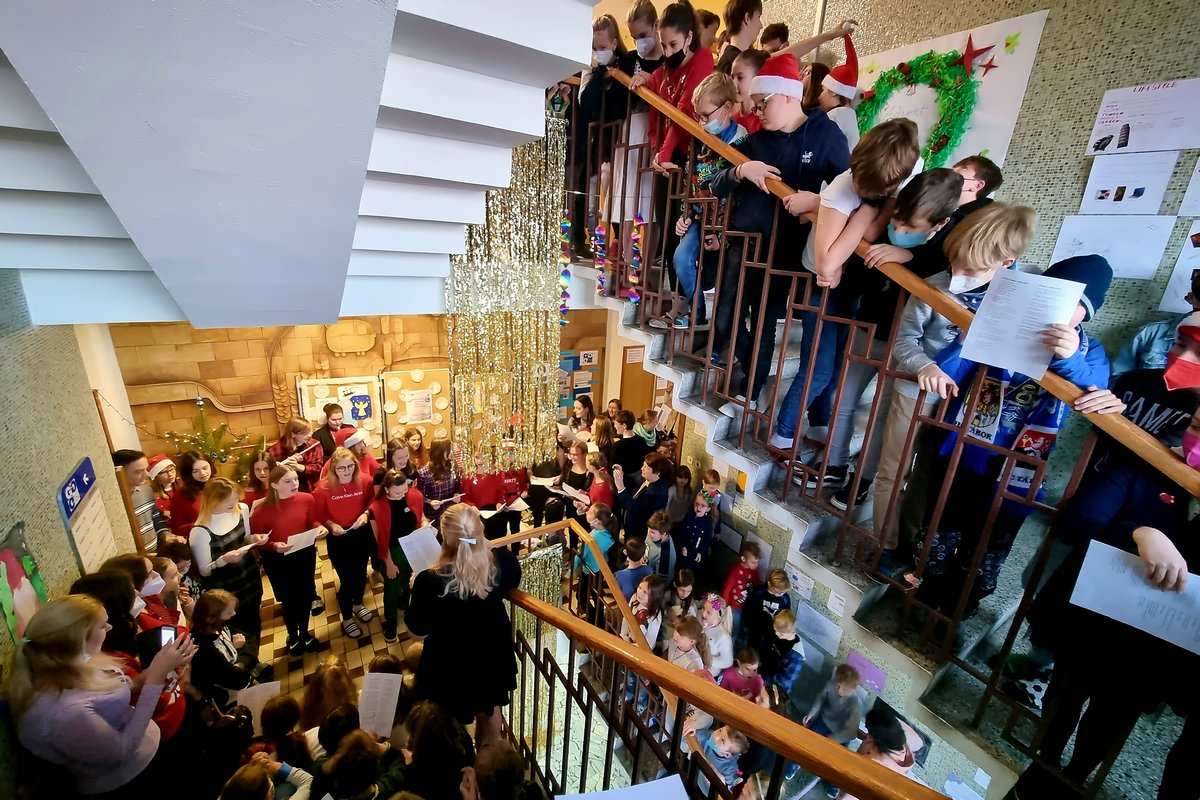 Poslední den školy před Vánoci nechybělo ani tradiční “zpívání na schodech”, kde jsme zapěli známé i méně známé koledy a vánoční písně, jako je třeba “Narodil se Kristus pán”, “Hallelujah”, “Půlnoční” a mnoho dalších.