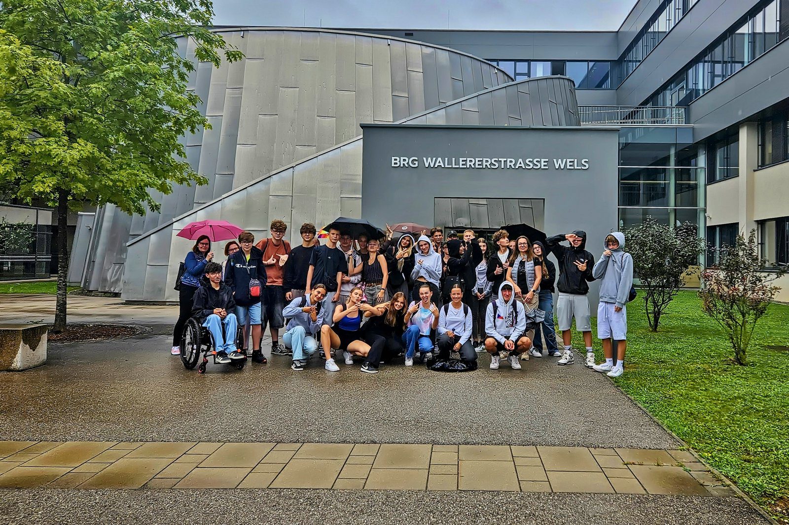 Wels – škola trochu jinak: Třetí den se nám rozpršelo, ale nám to nevadilo. Cílem dnešního dne byla návštěva BRG ve Welsu, našeho tradičního a dlouholetého školního partnera. Přivítala nás paní ředitelka spolu s místními studenty a rozdělili jsme se do skupinek. Čekala nás prohlídka školy, nahlédnutí do výuky a hlavně společná hodina angličtiny se staršími studenty. Povídali jsme si o všem možném – od školy až po volný čas. Zvládli jsme také poměrně náročnou dvouhodinovku „těláku“ (*pozn. zdejší škola je zaměřená na sport a bylo to sakra znát). Den jsme zakončili na náměstí ve Welsu, kde jsme si dali něco dobrého na zub a nasávali atmosféru města. Podvečerní/večerní program se odehrával na našem ubytování a byl ve znamení skupinových aktivit a vyhodnocení akcí.