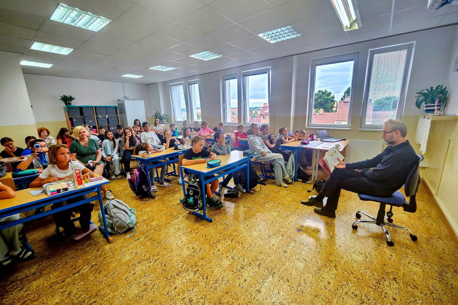 Prima a VI.A se setkaly se spisovatelem Jiřím Dvořákem, který předčítal ze své knihy Miko – kompletního zpravodaje ze světa hub. Kvarta se sextou pohostili básníka a prozaika Petra Borkovce, který četl dvě ze svých povídek, a třídy septimu a oktávu navštívila Dora Kaprálová, ze které si pro vás připravila reportáž Eliška Schlehoferová: