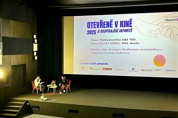 Po filmu následovala beseda s Mgr. Kristýnou Študlarovou, psycholožkou momentálně pracující v Dětské psychiatrické nemocnici Opařany. Téma besedy bylo zdravá komunikace ve vztazích, prevence nedorozumění v intimních otázkách a posilování respektu mezi partnery. Beseda byla interaktivní – na pódiu diskutovala Kristýna se studentem gymnázia a aktivně zapojovala i ostatní účastníky do debaty.