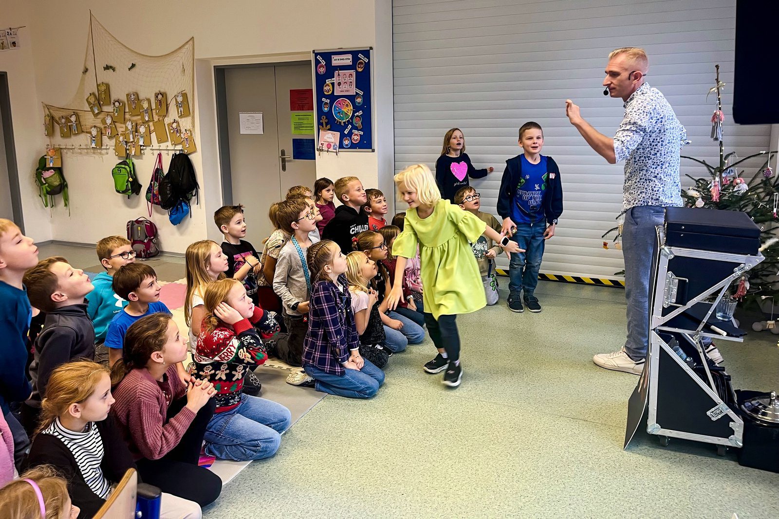 Karty měnily tvar i barvu tak rychle, že ani ti nejpozornější nestačili sledovat, co se děje. Největší úžas ale vyvolala chvíle, kdy začala dětem „téct“ voda z uší přímo do sklenice. Smích a překvapení vystřídalo ohromené ticho, když Martin z obyčejného papíru během okamžiku vytvořil tisícikorunu. Závěrečná práce s bělostnou holubicí pak celé vystoupení krásně uzavřela.