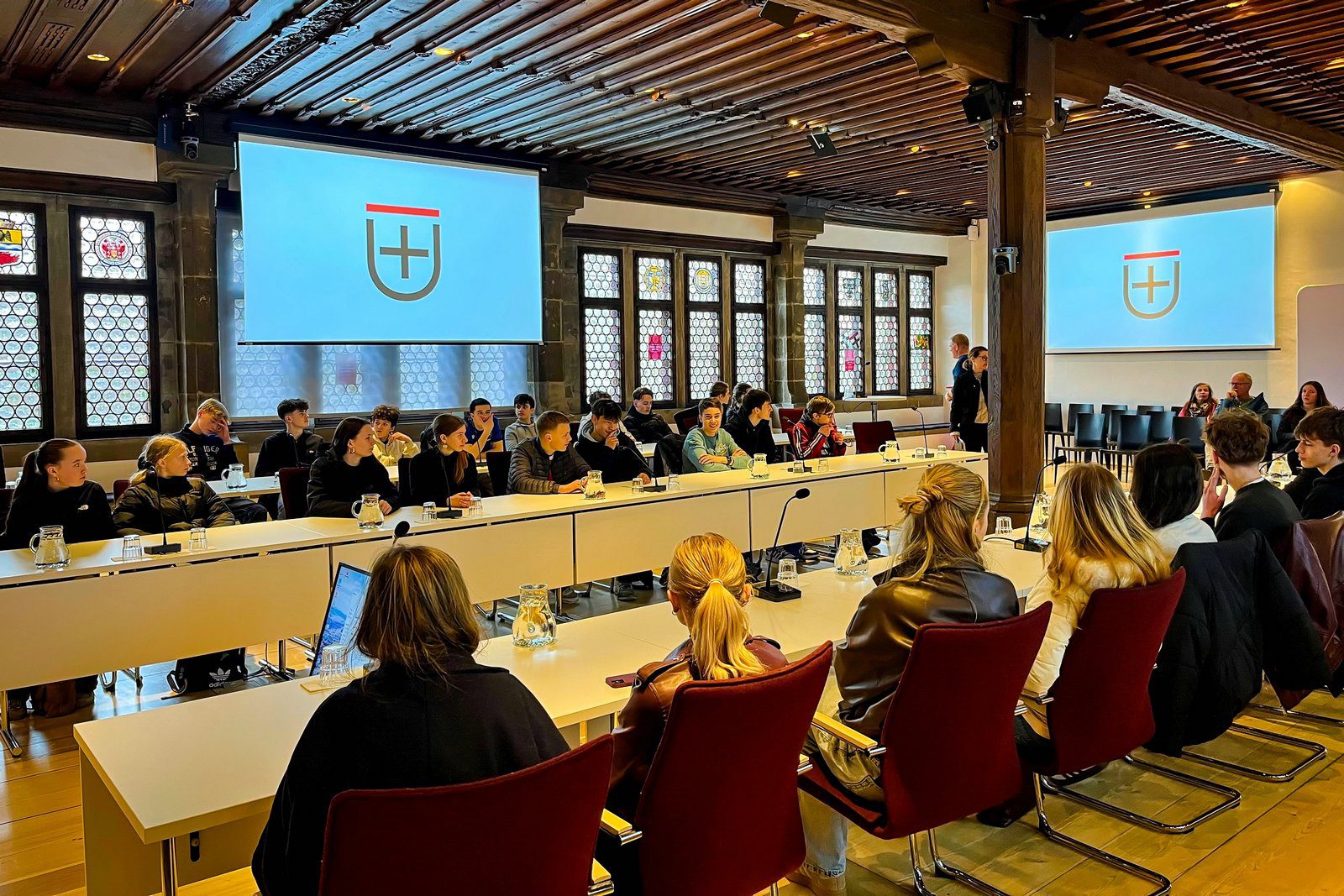 Prohlídka skončila kolem poledne a následoval rozchod na oběd. Většina české skupiny spolu s novými německými přáteli zamířila do restaurace Casablanca na náměstí. Jídlo bylo nejen cenově přijatelné, ale i velmi chutné. Po obědě nás čekal workshop na kostnické radnici. Pan dr. Tchakoura nám přiblížil téma diverzity v Kostnici a následně jsme ve smíšených skupinách diskutovali o situaci v našich zemích. Výsledky jsme poté prezentovali ostatním. Po skončení programu jsme se za deště vydali k Hus-Hausu, tedy domu, kde měl Jan Hus během koncilu bydlet a kde se dnes nachází muzeum spravované Táborským husitským muzeem. Tím oficiální program skončil, ale naši noví přátelé nás pozvali ven, což bylo skvělé zakončení už tak velmi vydařeného dne. Troufáme si říct, že právě středa byla vrcholem celého týdne.