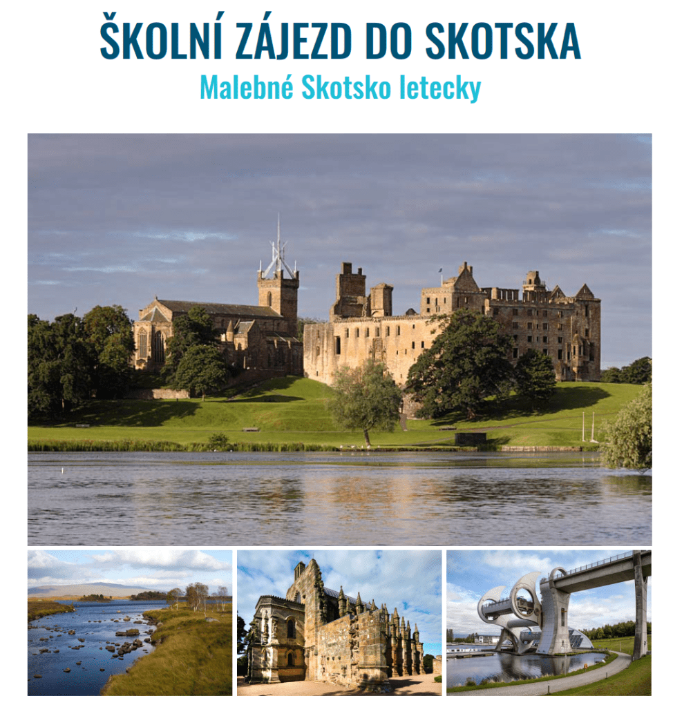 Dopoledne se individuálně dopravíme na letiště Václava Havla v Praze, odbavíme se a odletíme do Edinburghu. Po přistání nás vyzvedne místní autobus, který nám bude po dobu našeho pobytu ve Skotsku k dispozici. Přejedeme do Linlithgow, kde si prohlédneme renesanční palác, kde se narodila Marie Stuartovna. Odpoledne navštívíme technickou pozoruhodnost Falkirk Wheel. Jedná se o unikátní rotační zdymadlo, které spojuje dva plavební kanály s rozdílnou výškou hladiny. Poté se zastavíme u monumentálních soch koní Kelpies, které jsou symbolem skotské mytologie a poctou silným tažným koním, jež v minulosti pomáhali v průmyslu a zemědělství. Večer dojedeme na ubytování do hostitelských rodin, kde se také navečeříme.